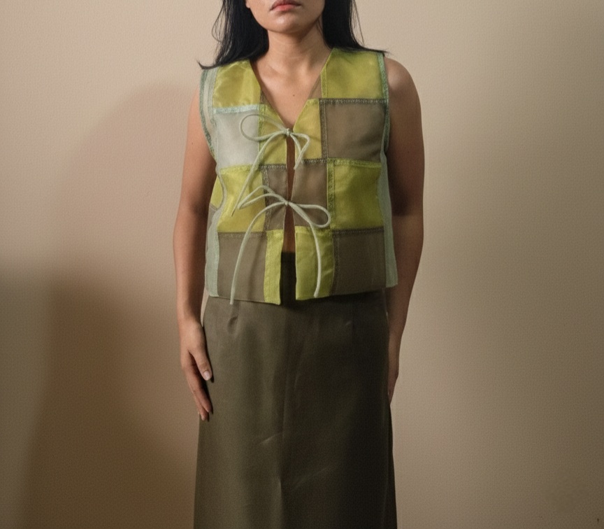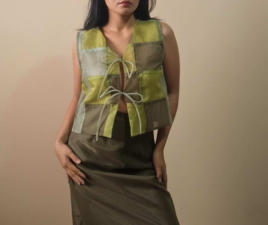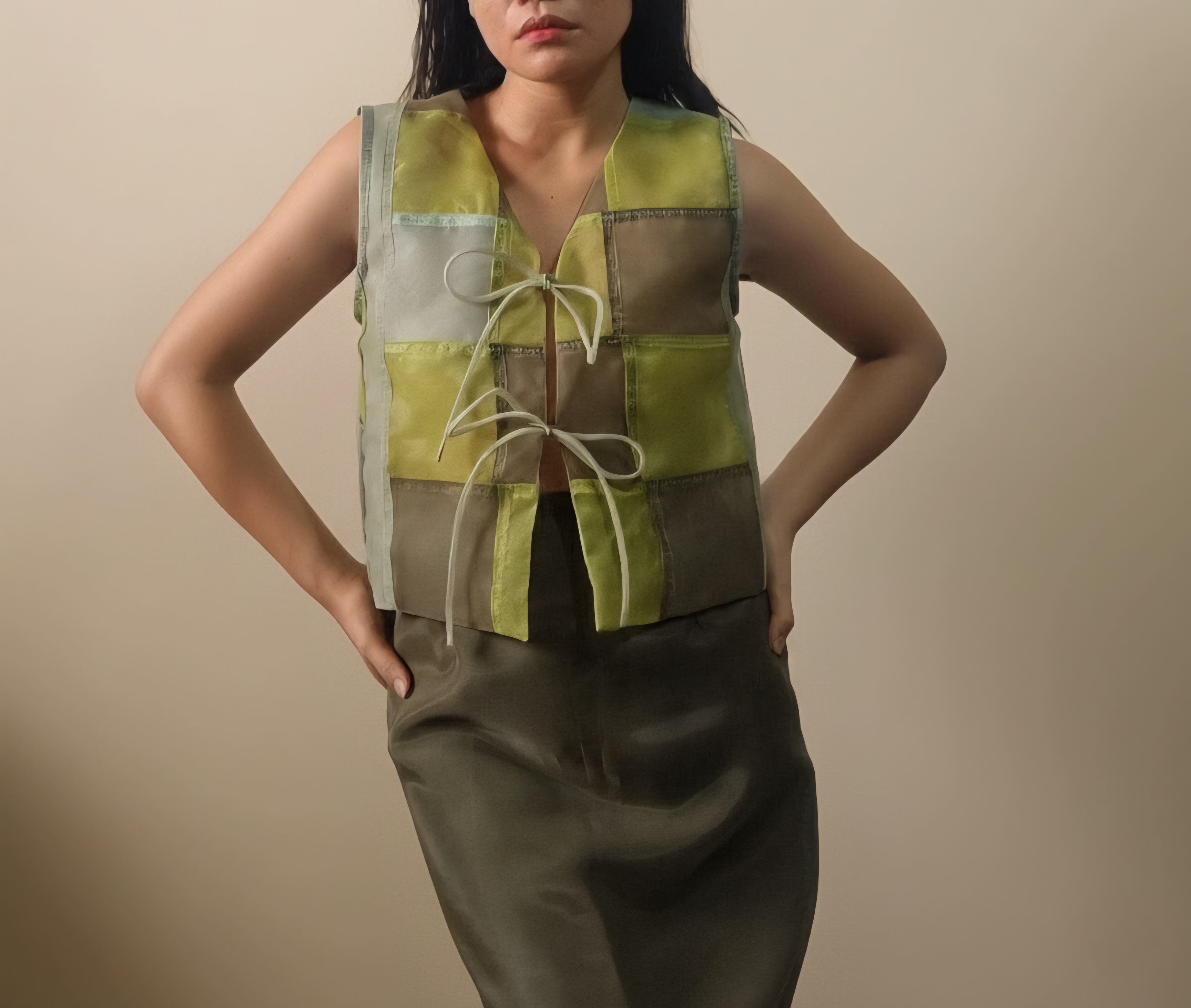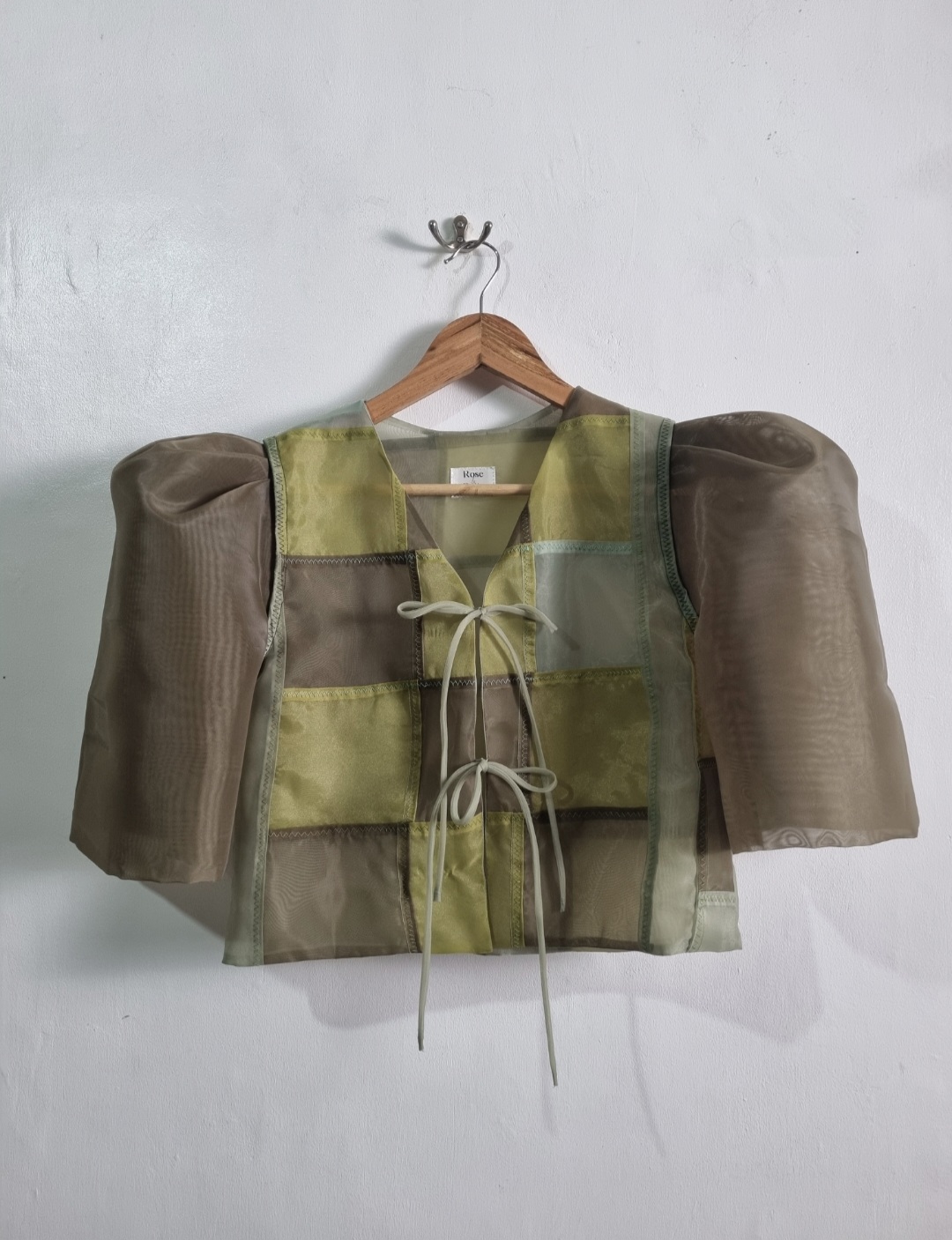 Made from carefully sewn retaso scraps, this piece transforms fabric remnants into a new, thoughtfully crafted textile. Designed to be worn two ways— with sleeves for a classic Filipiniana look, or without sleeves as a vest. Finished with a self-tie front closure for an adjustable, effortless fit.