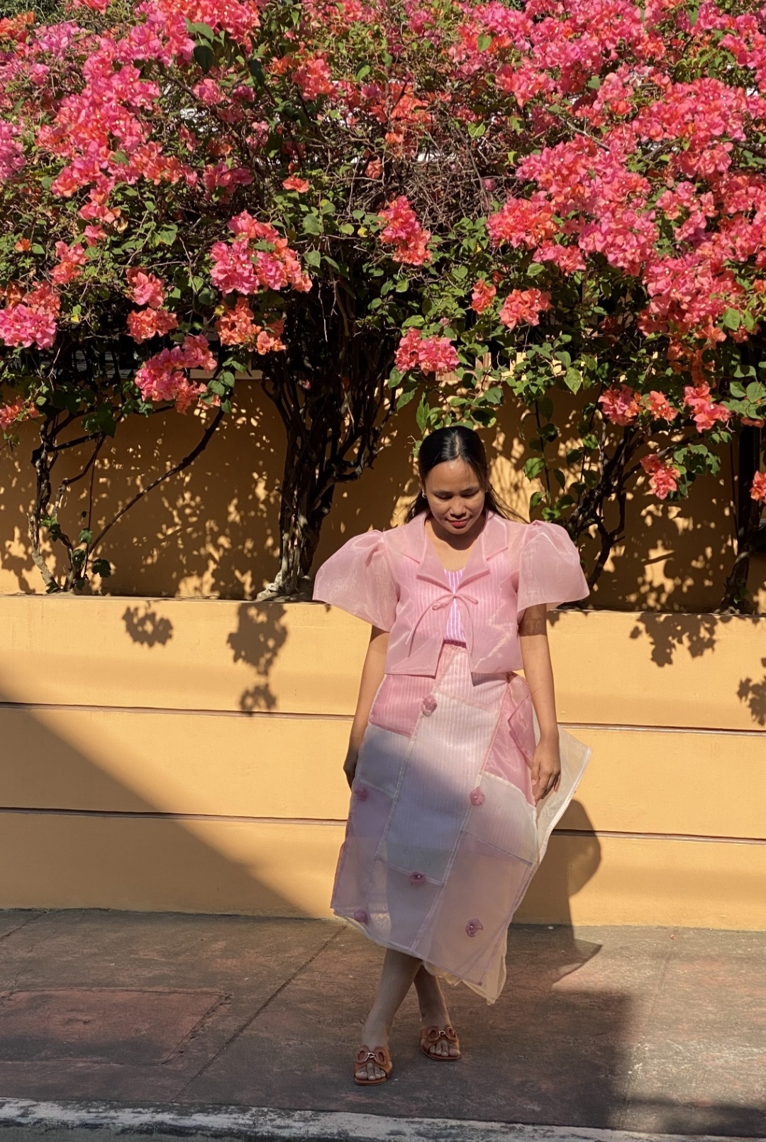 The Norma Tapis: A gorgeous statement piece showcasing sheer patchwork panels, beautifully embellished with intricate handmade flowers.