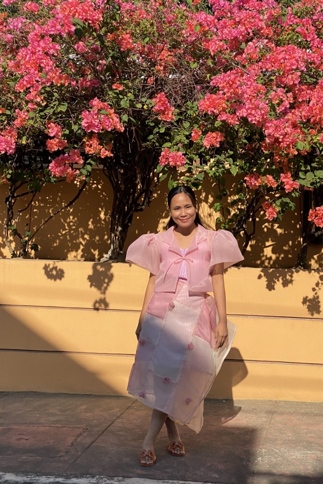 The Norma Tapis: A gorgeous statement piece showcasing sheer patchwork panels, beautifully embellished with intricate handmade flowers.